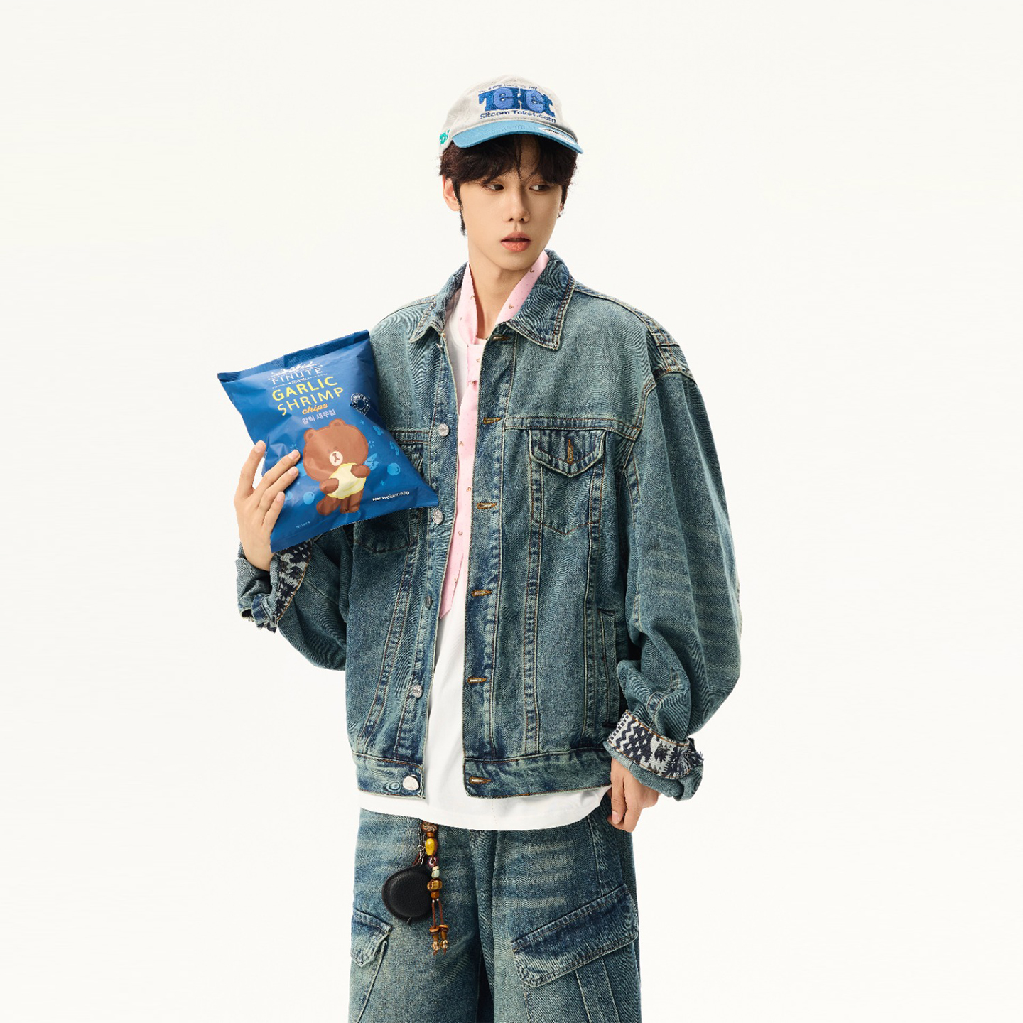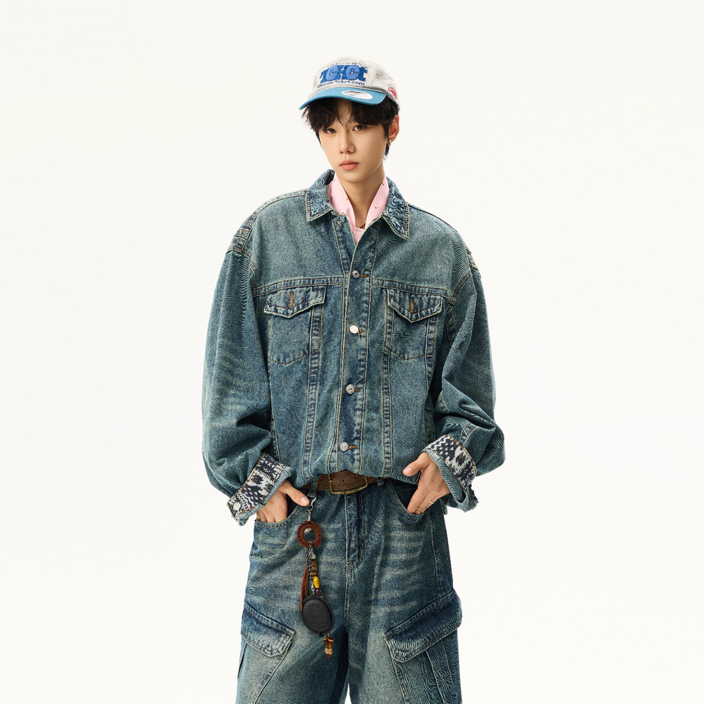 复古水洗做旧多口袋牛仔外套男款春秋季新款美式重磅痞帅宽松夹克