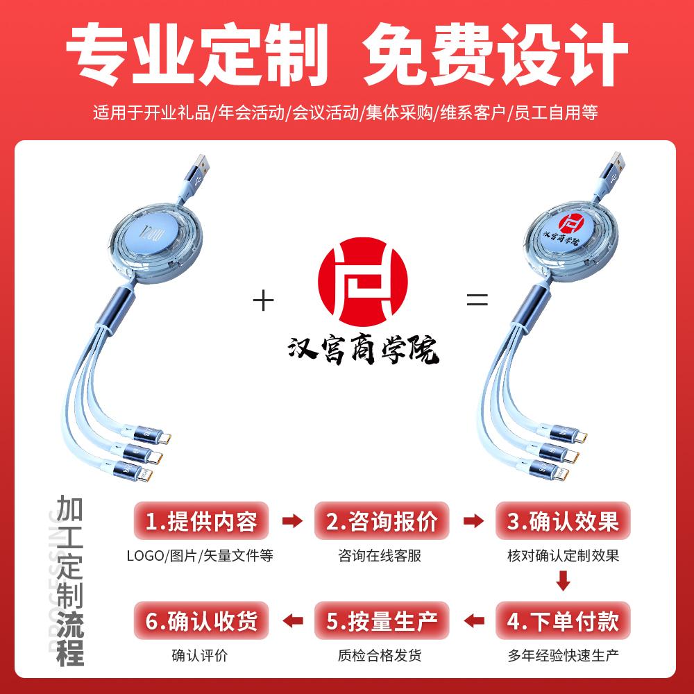 120W一拖三超级快充二拖二数据线定制logo公司活动宣传伴手礼适用于Type-C苹果15华为安卓带支架三合一充电线