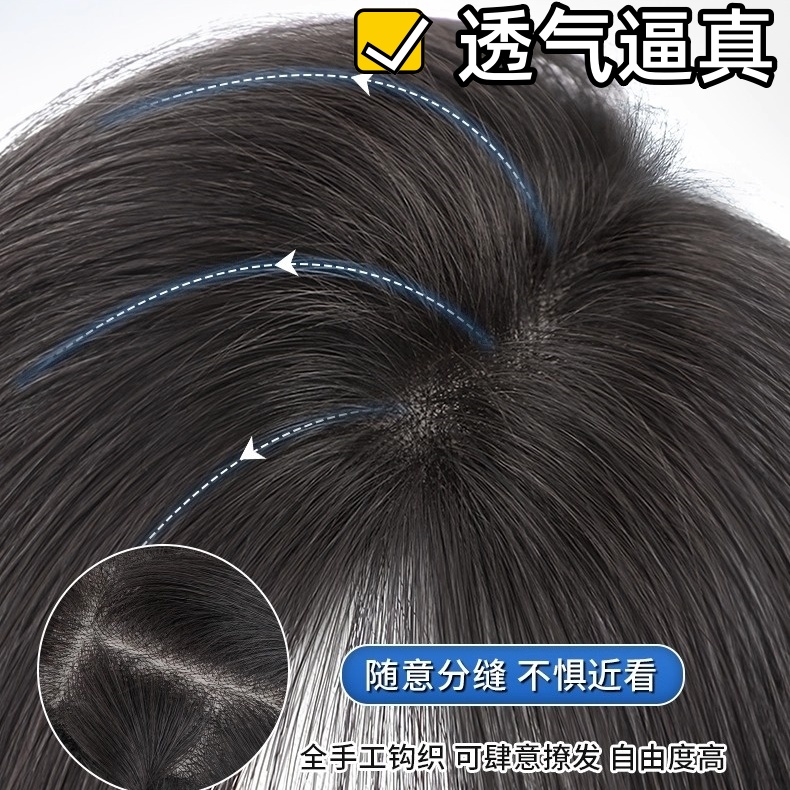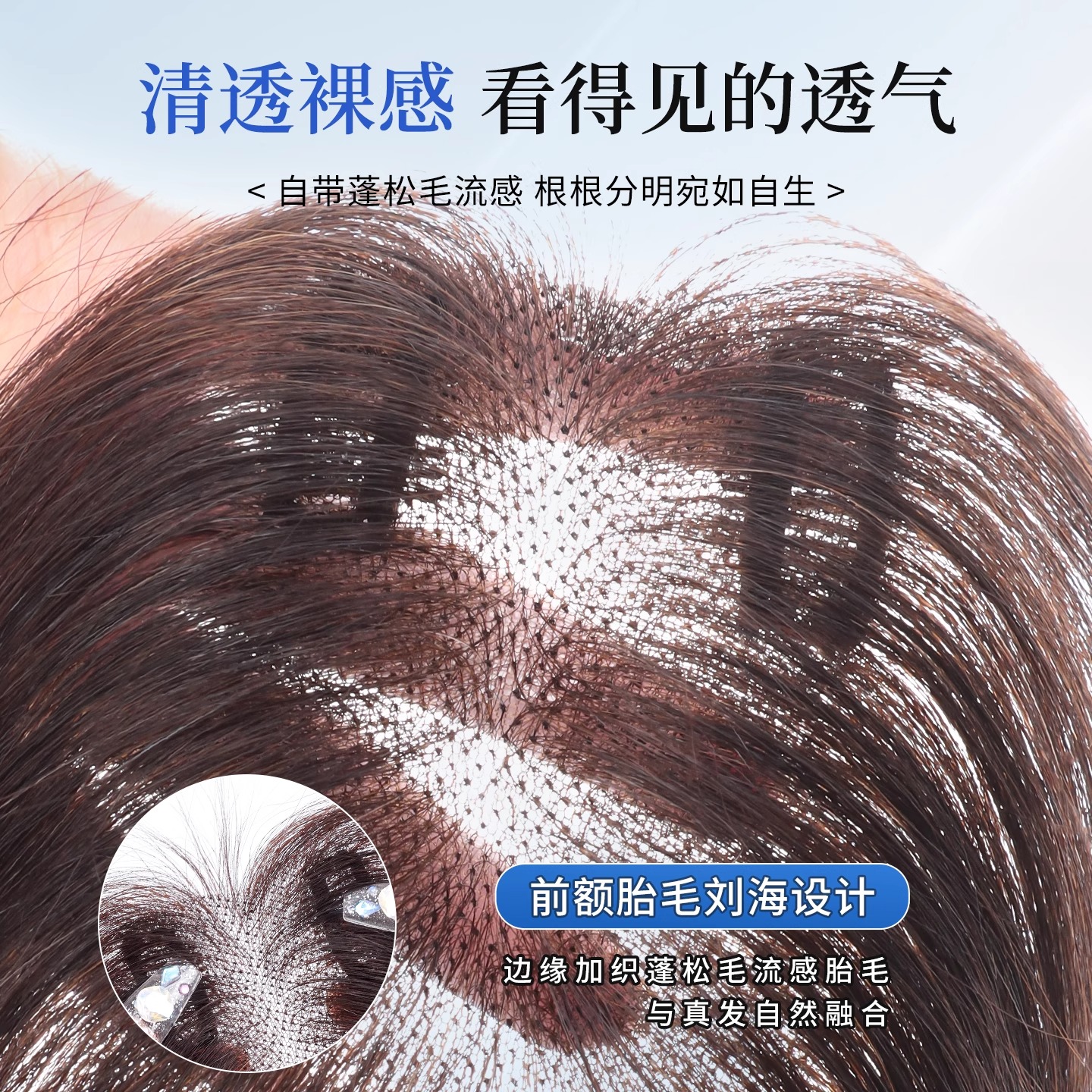 轻薄无痕全无边假发女片头顶蓬松增发量真发遮白发高颅顶刘海补发