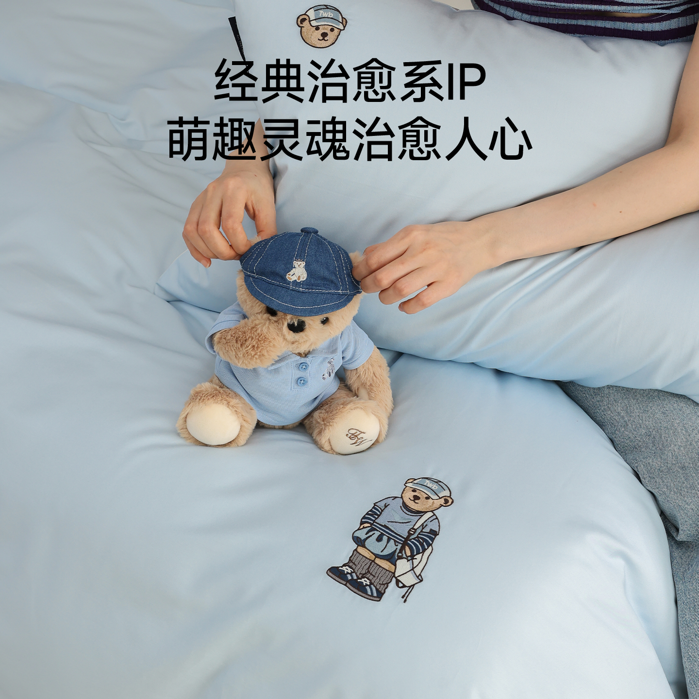 TeenieWeenie小熊刺绣星光蓝床上用品四件套纯棉全棉2025新款被套