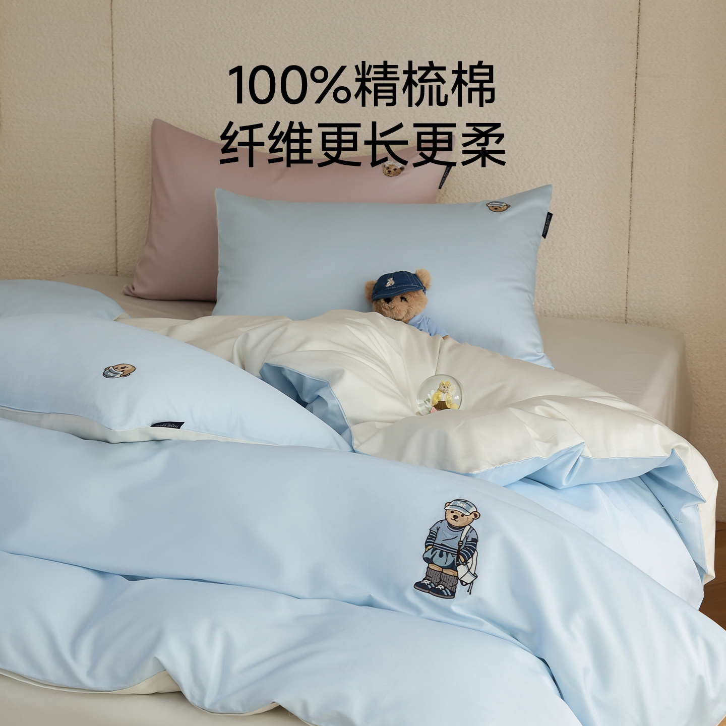 TeenieWeenie全棉水洗棉四件套100纯棉被套床单床笠款床上三件套4