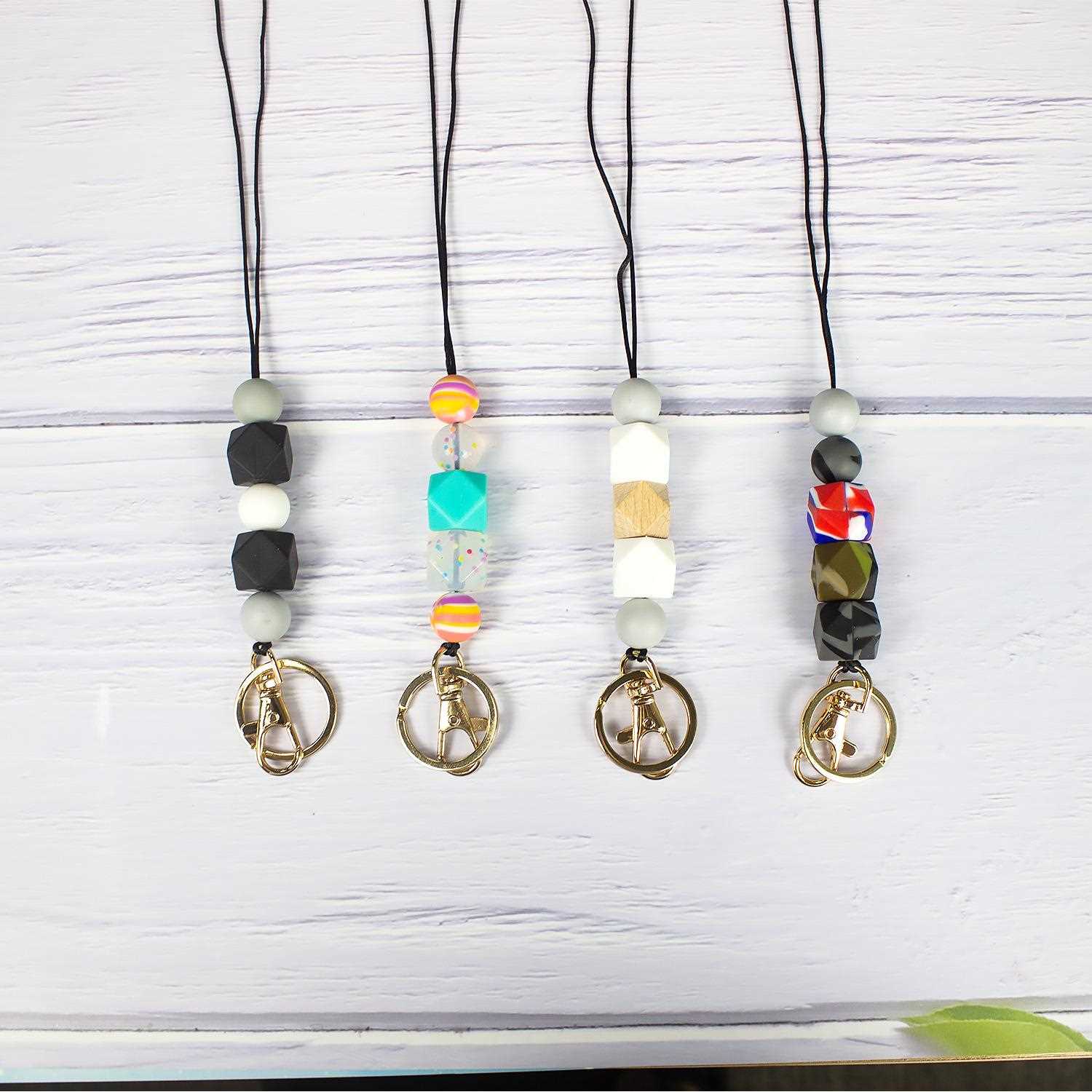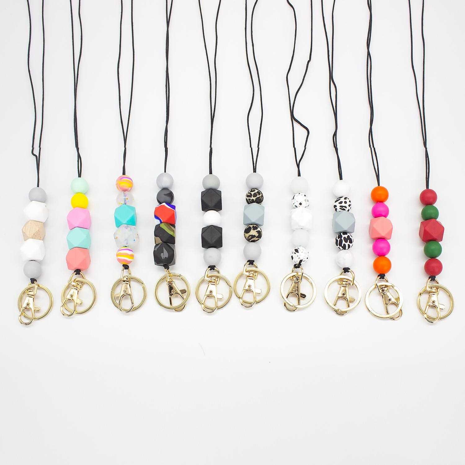 新款直销欧式时尚创意硅胶串珠挂绳 亚马逊跨境挂l牌工作证实用钥
