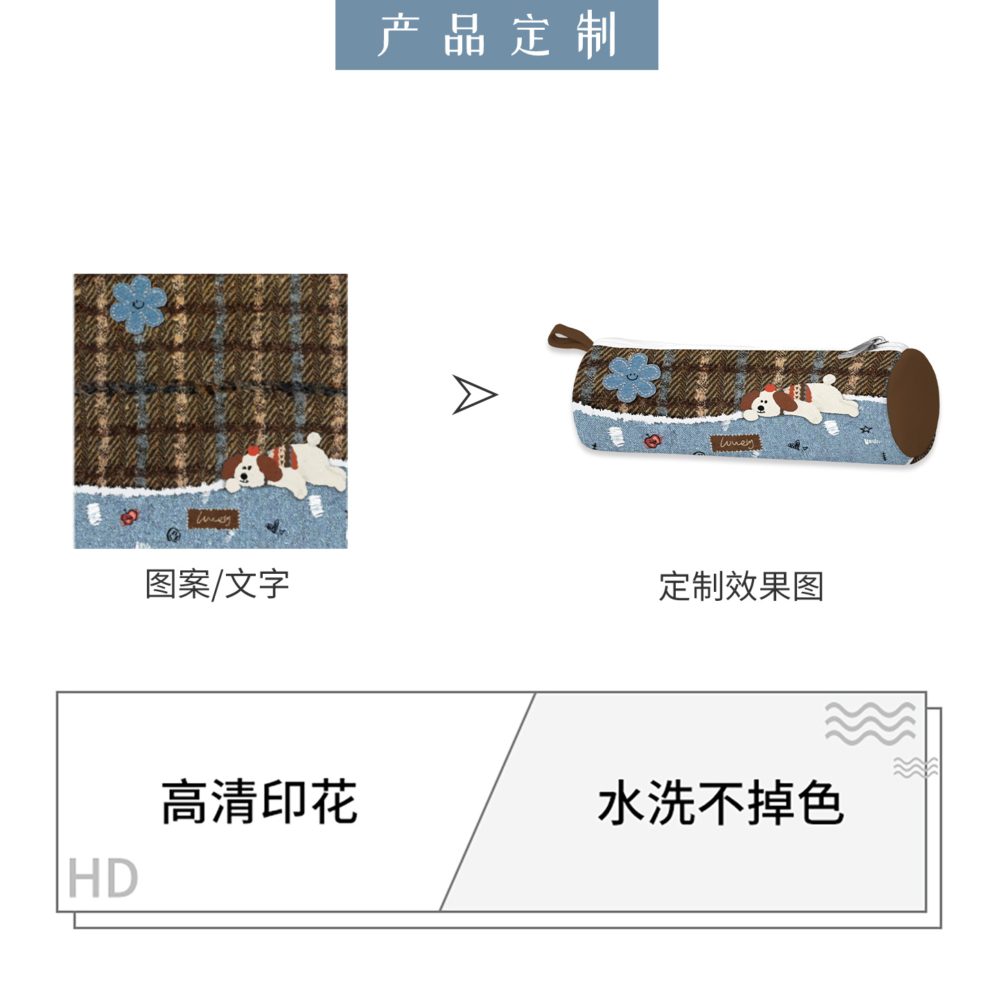 印你所想原创牛仔趴趴熊笔袋百搭幼儿园一年级初中生小学生儿童可爱帆布高颜值ins风小众不撞款女孩文具盒