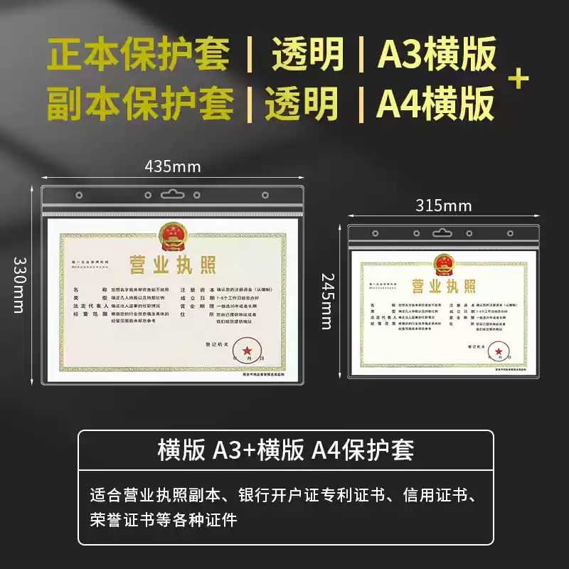a3营业执照正副本保护套个体工商户个体工商户食品卫生经营许可证框a4证书证件挂套挂墙透明加厚防水软卡套