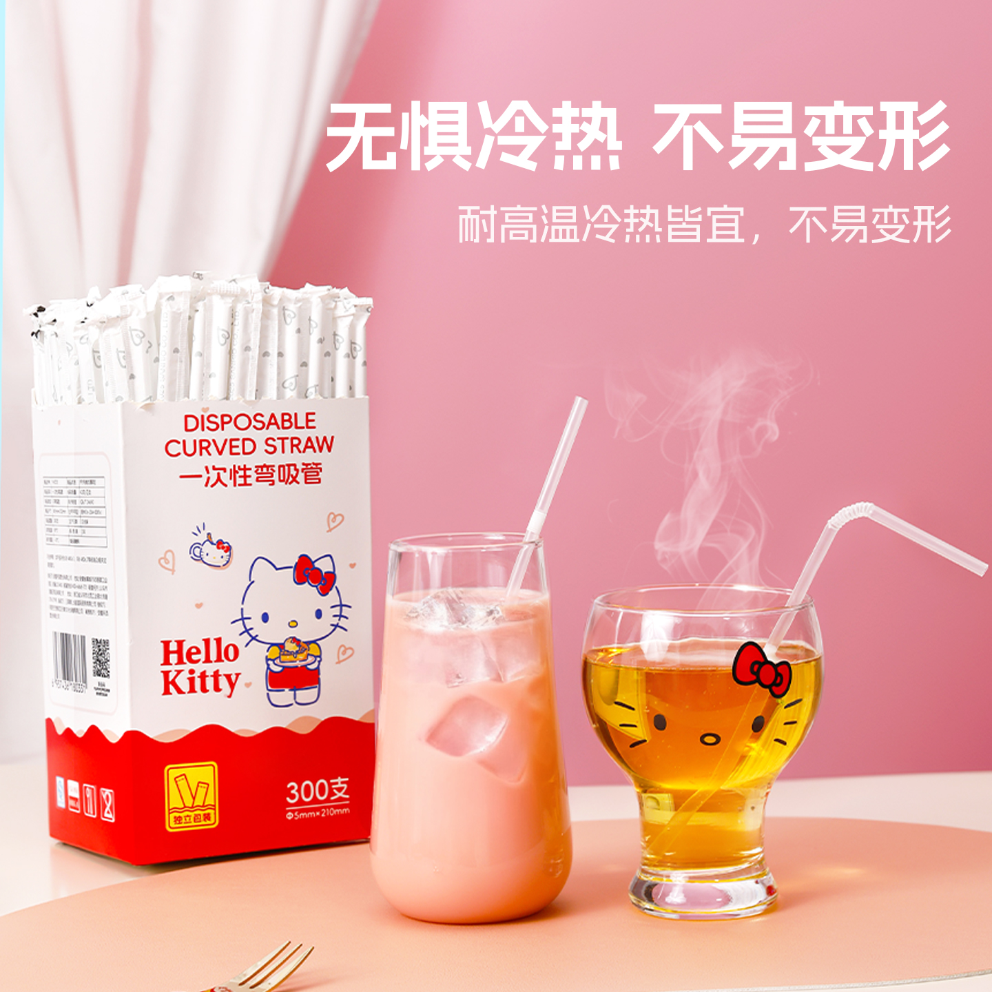 宜洁三丽鸥一次性吸管独立包装食品级可弯曲盒装产妇儿童喝水奶茶