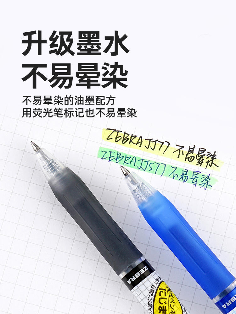 蝴蝶结!日本ZEBRA斑马不晕染中性笔JJ77格子控按动水笔0.5学生考试刷题笔Fmarkon黑色0.4正品