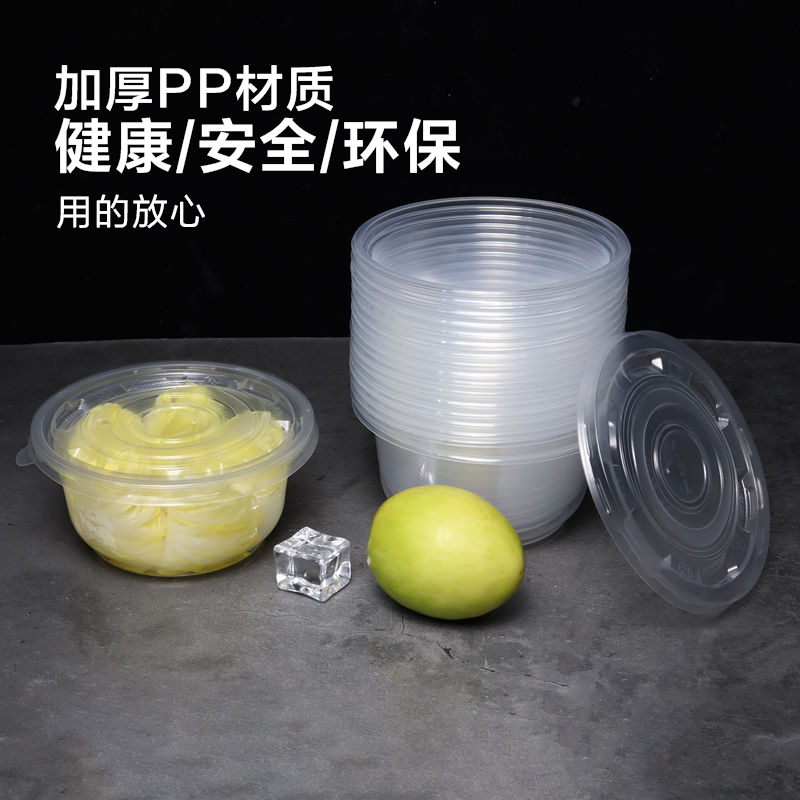 一次性碗塑料家用小碗套装圆形带盖饭盒打包餐盒餐具冰粉商用碗筷