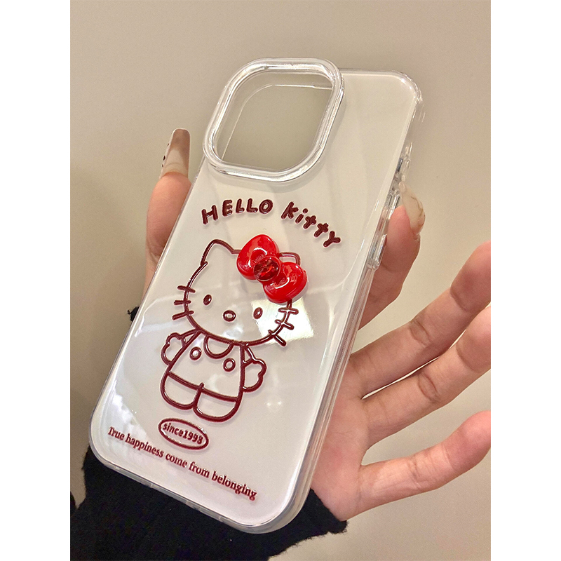 少女卡通可爱线条猫咪蝴蝶结适用苹果17promax手机壳iPhone17女新款14网红16个性15Pro防摔14pro保护套13日系