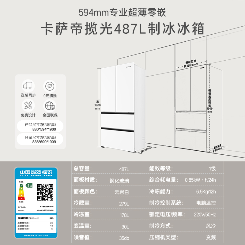 以旧换新卡萨帝揽光487L超薄零嵌入式制冰法式风冷无霜家用电冰箱