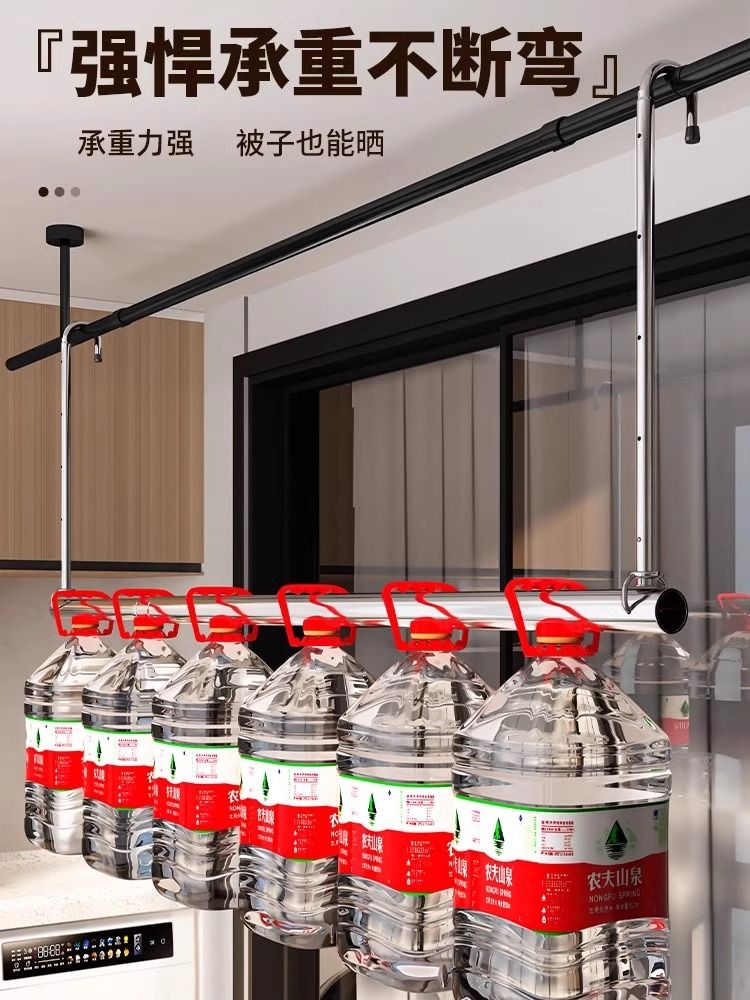 晾衣杆阳台升降伸缩晾衣架免打孔悬挂式晒被子专用神器加粗固定