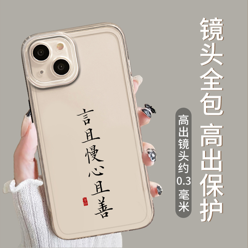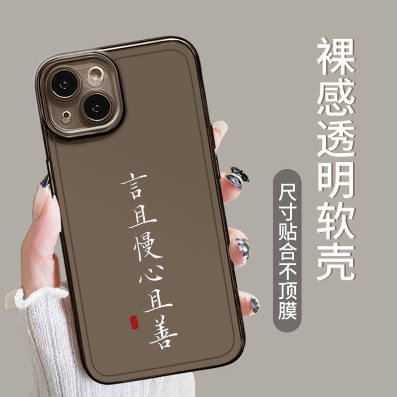 言且慢心且善手机壳适用苹果15promax新款iPhone14书法13mini中国风12pro小众11高级感8plus透明7p男女款xr套