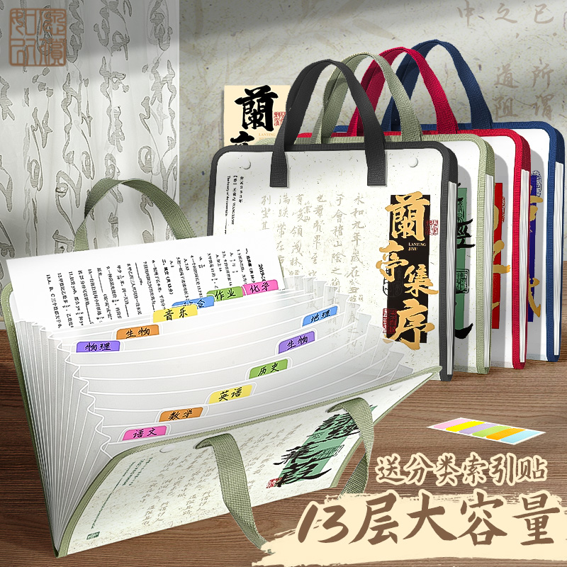 手提式风琴文件夹初中生专用大容量a4试卷收纳袋小学生高颜值试卷夹透明插页袋装卷子的资料夹子分类整理