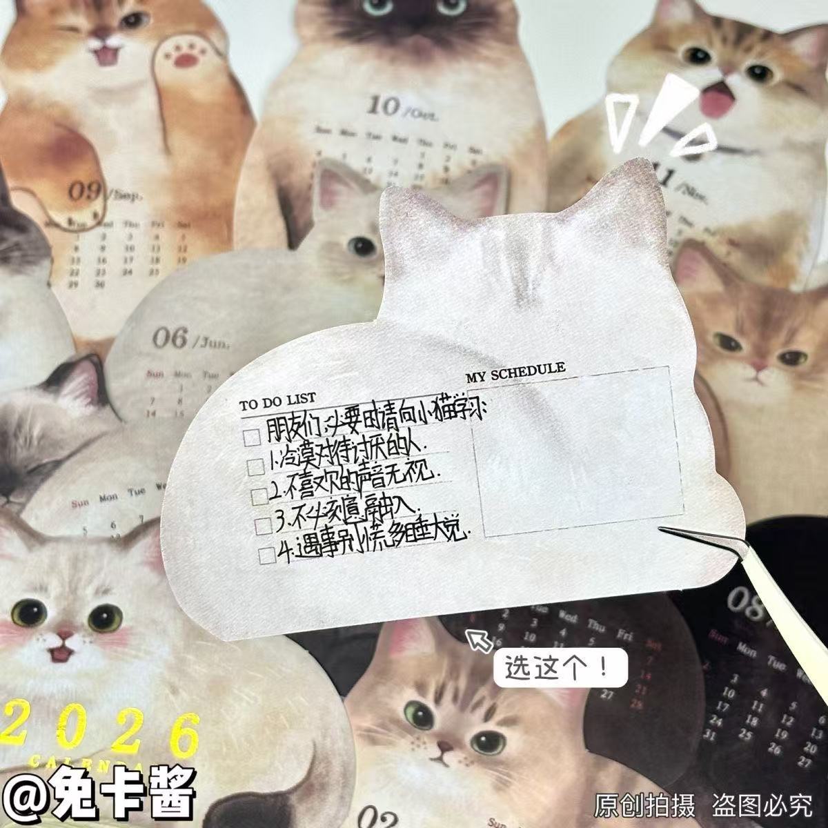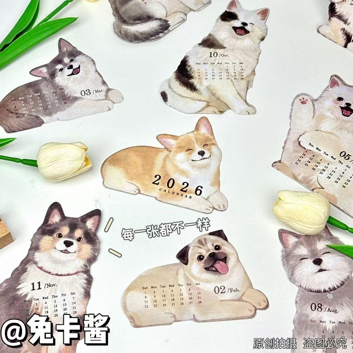2026年台历创意桌面宠物木质立体台历卡通治愈猫咪摆件闺蜜生日礼