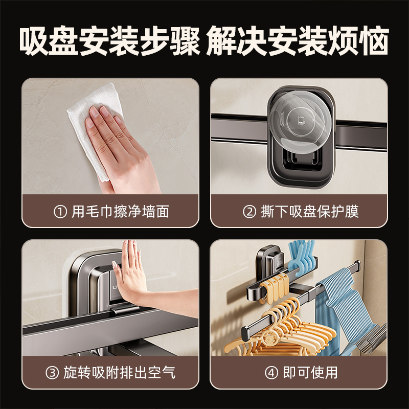 阳台吸盘衣架收纳神器免打孔家用多功能放夹子挂衣架子墙上壁挂杆
