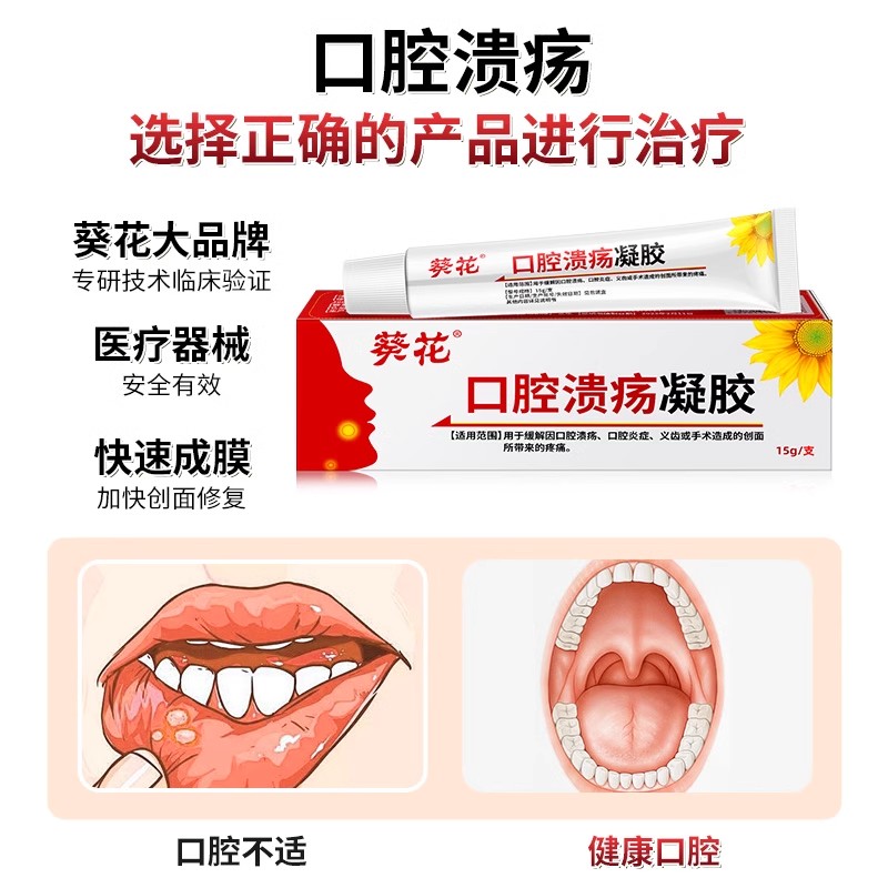 葵花口腔溃疡凝胶嘴巴上火长泡成人儿童口腔舌头痛膏官方旗舰店