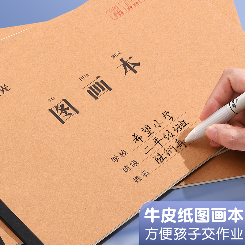 晨光画画本a4图画本小学生用儿童幼儿园涂色本空白美术本绘画本画纸加厚白纸素描纸初学者手绘涂鸦牛皮纸封面