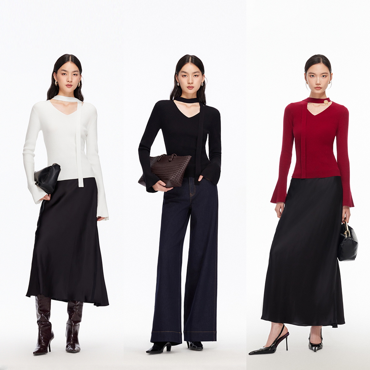 Vero Moda针织衫女2025秋冬含绵羊毛微喇袖织带修身上衣时尚百搭
