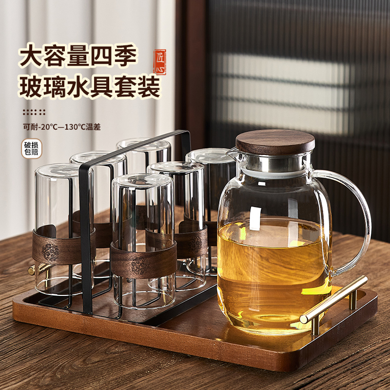 冷水壶玻璃耐高温家用大容量食品级高硼硅加厚储水泡茶果茶凉水杯