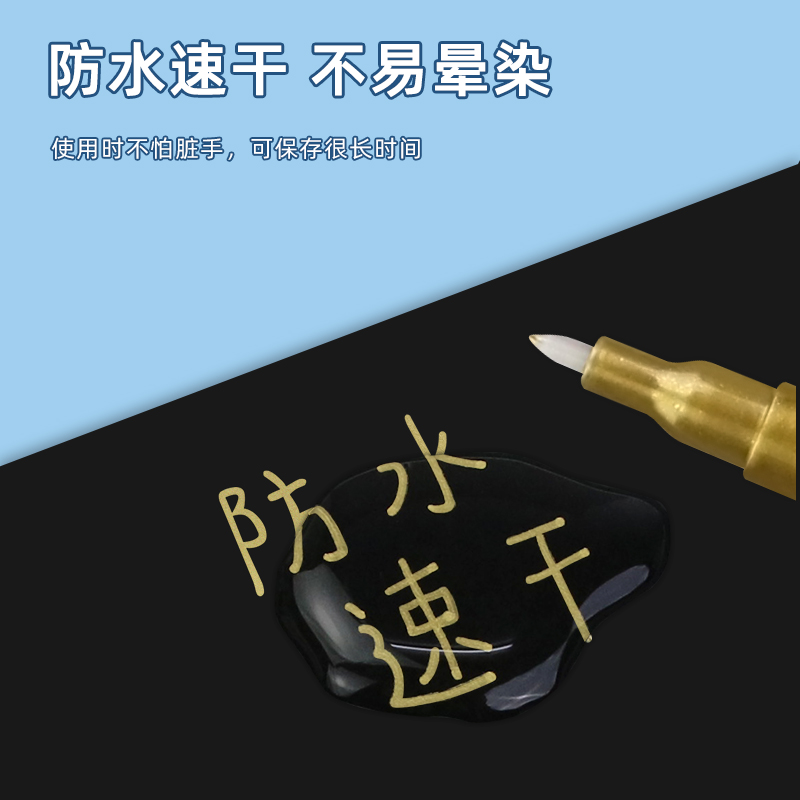 金属油漆笔防水防油不掉色1.0mm细头金色补漆笔银色白色速干水性记号笔汽车轮胎改色笔涂鸦工地专用描字漆笔