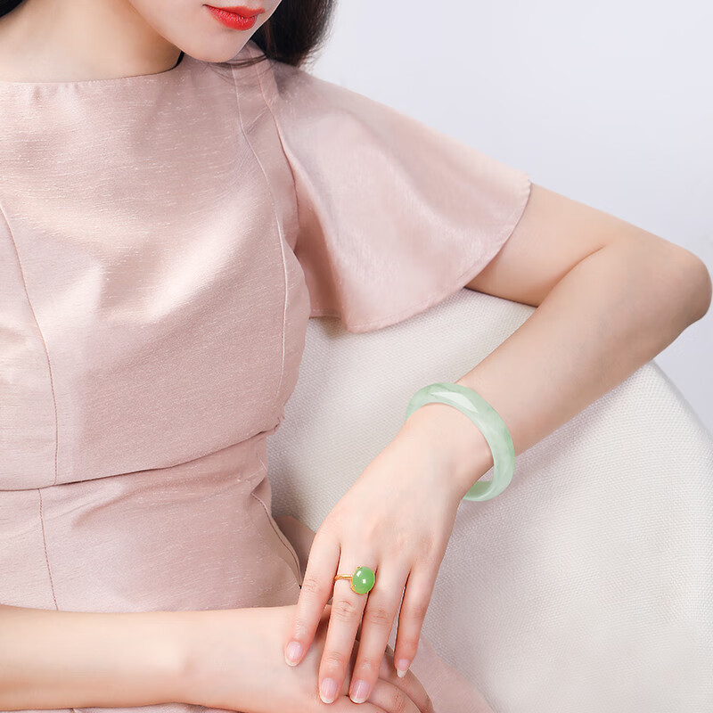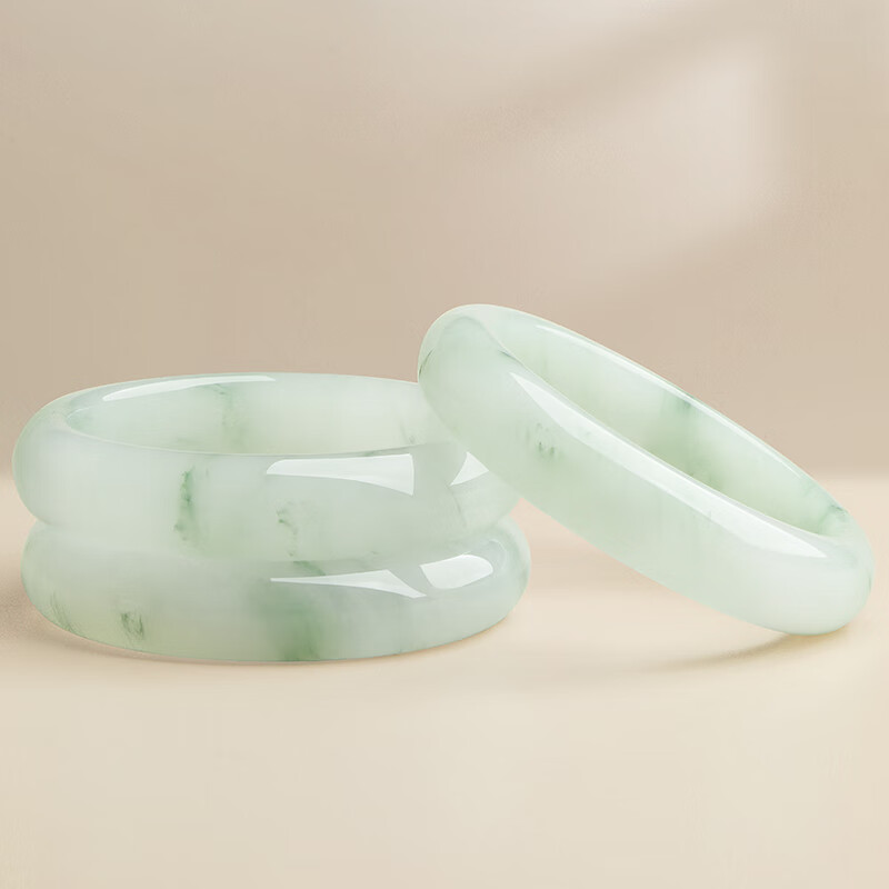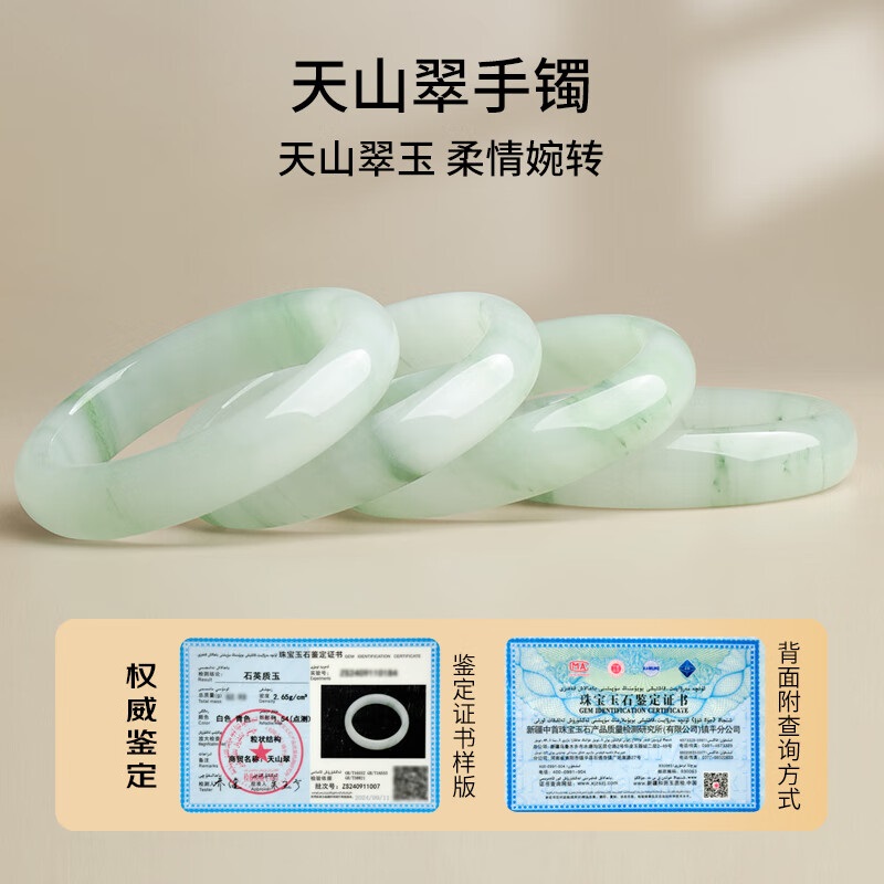 【100%无酸洗无染色】新疆天山翠手镯冰种女款真玉石雪翠扁条飘花
