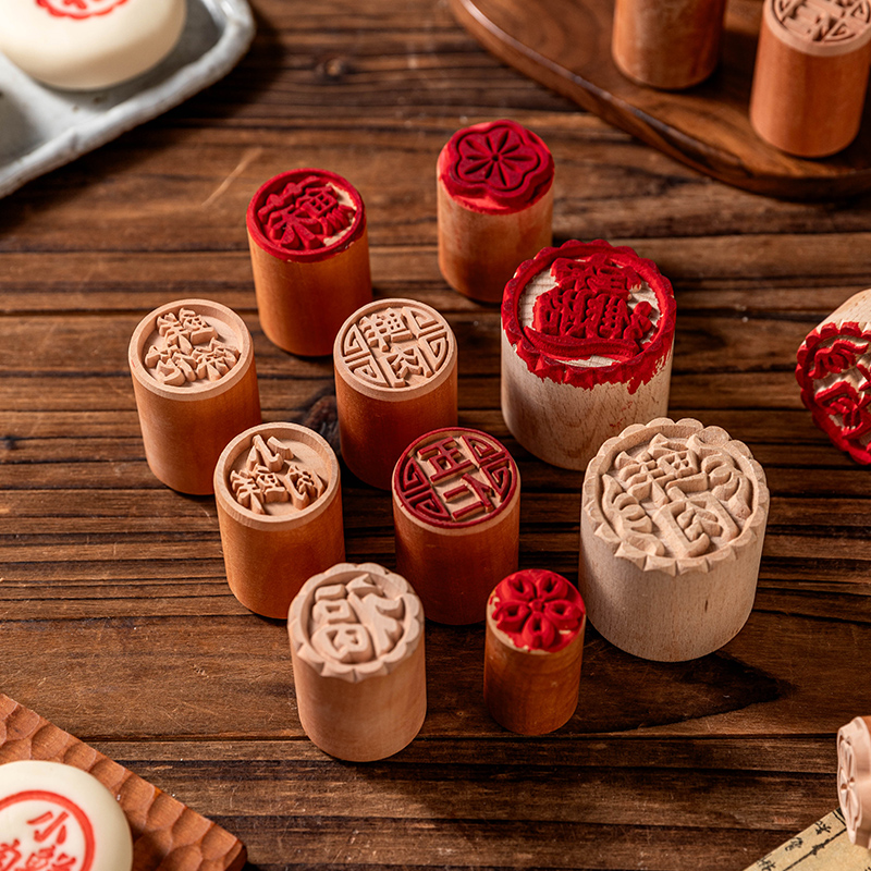 苏式月饼印章盖鲜肉猪木质色素模具中秋节蛋黄酥白皮桃花鲜小馒头