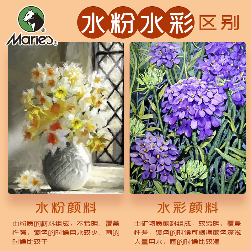 马利水彩水粉画颜料套装工具画画初学者儿童24色幼儿园小学生绘画色彩无毒12色36色专用美术生可水洗专业水分