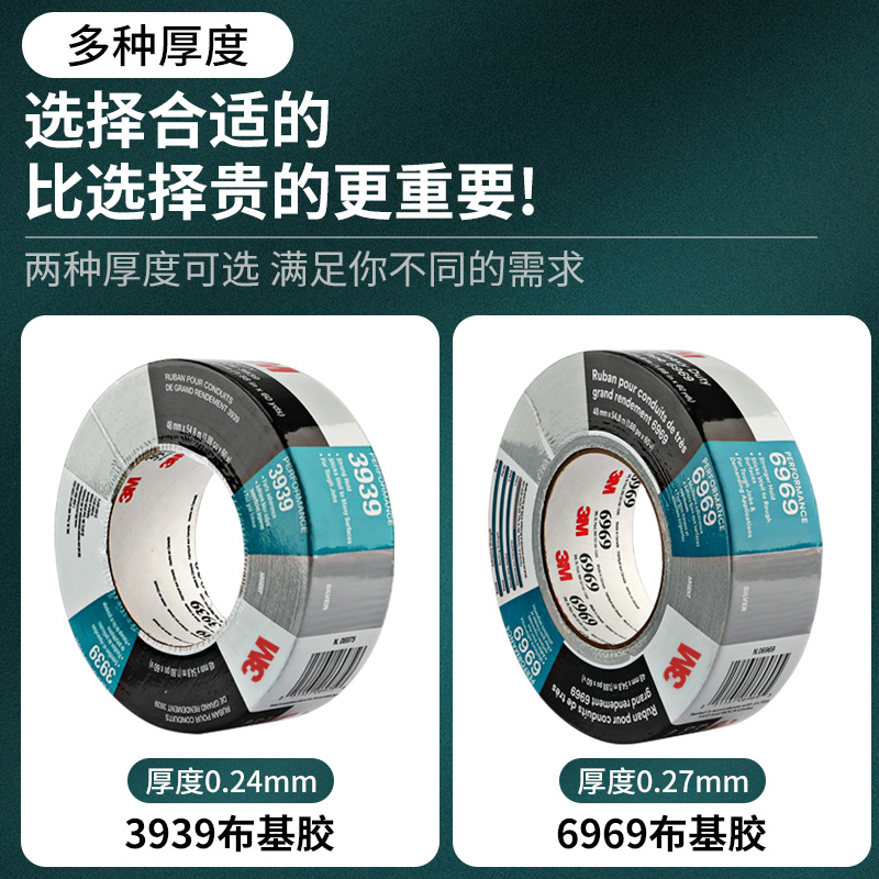3M6969布基胶带银色黑色管道捆绑加固diy装饰摄影婚庆展会3939大力高粘防水警示加宽补漏地毯拼接固定胶带
