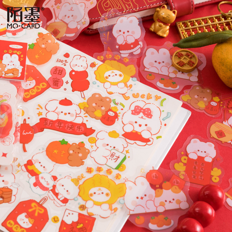 陌墨 PET贴纸包 糯叽叽之新年快乐系列 可爱ins风手帐素材贴 2款