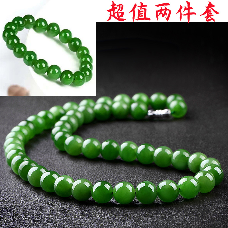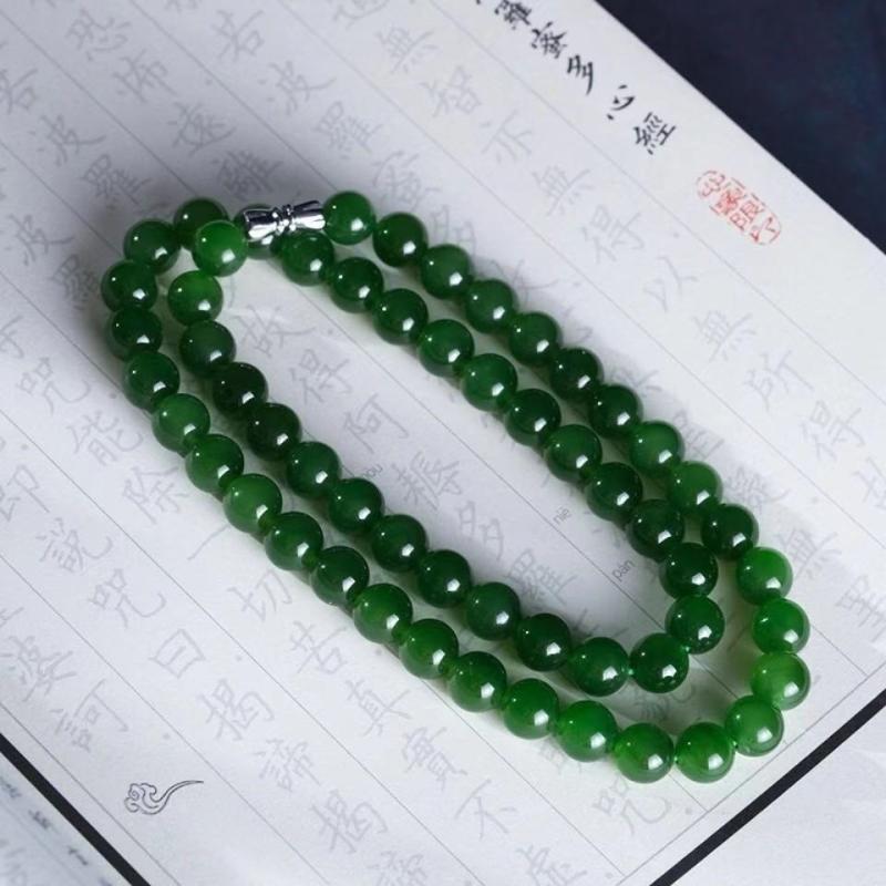 碧绿玉色项链女士手链女款气质高档圆珠菠菜绿手串简约礼物送妈妈