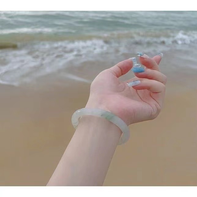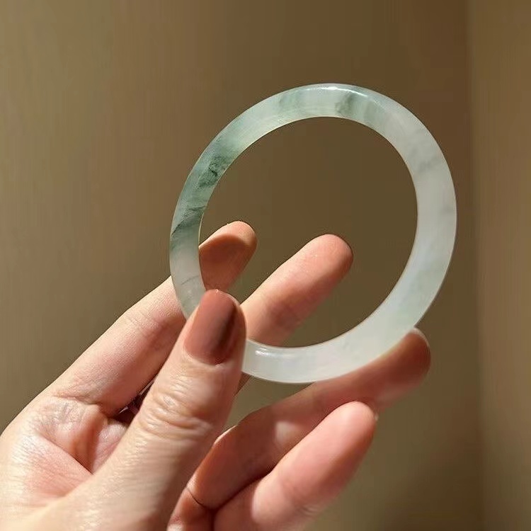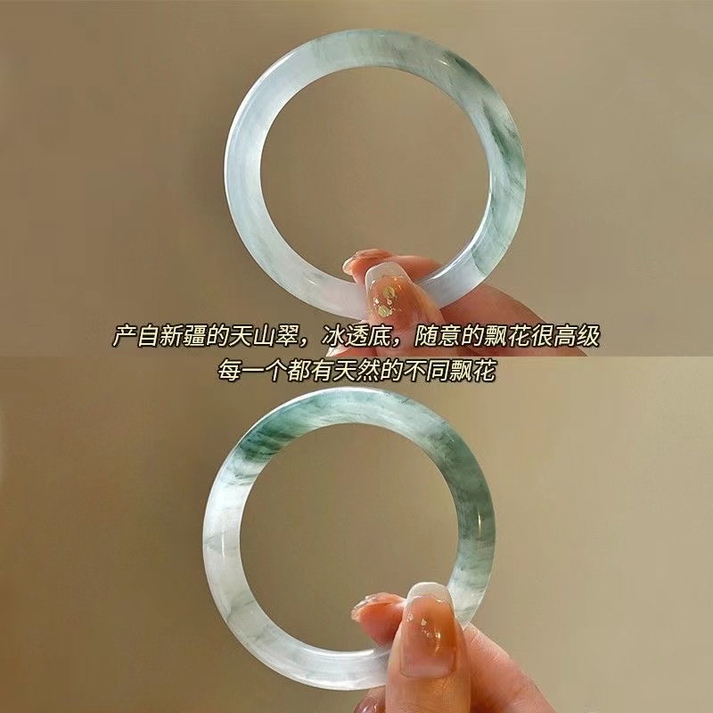 爆款仿新疆天山翠玉手镯子冰糯种冰翠浅绿半山水飘圆条手镯圈口