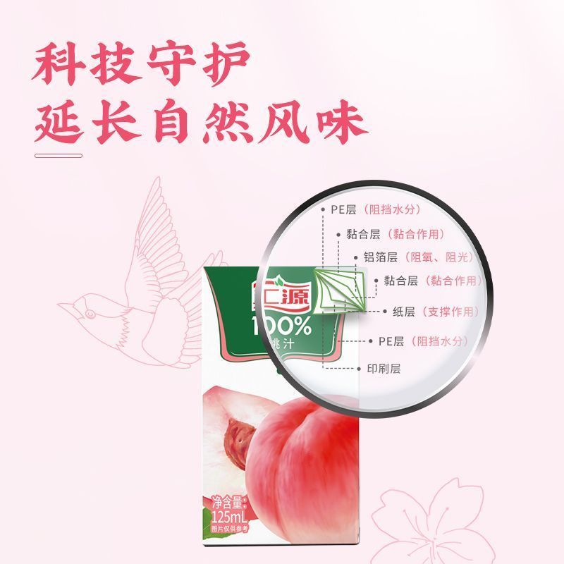 汇源100%桃汁浓缩果汁125ml*6盒装口袋果汁便携鲜果压榨清爽解腻R