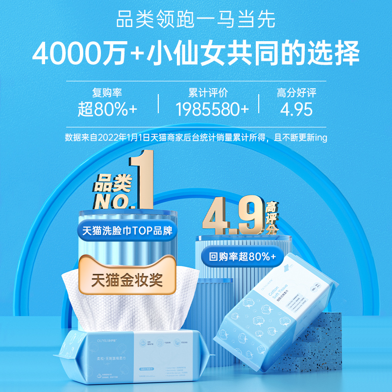 OEIEZ/欧亿姿欧亿姿渐变蓝洗脸巾一次性棉柔巾官方旗舰店50抽