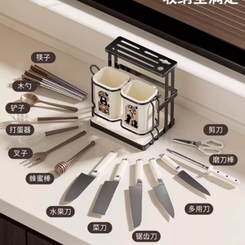 中古风刀架筷子笼置物架多功能2025厨房新款一体收纳架菜刀放置座