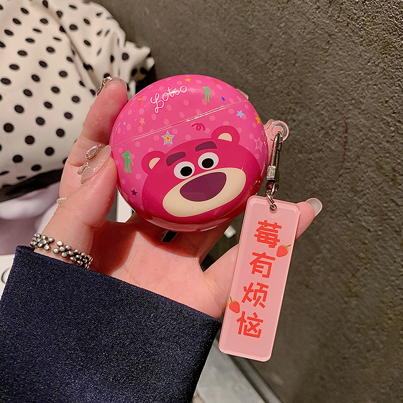 适用华为freeclip保护套freebudspro4草莓熊freebuds5耳机套freebuds4e文字挂件SE2软壳freebuds7i/6i女pro3