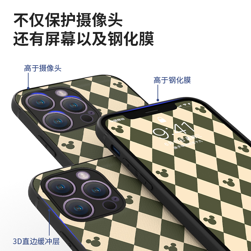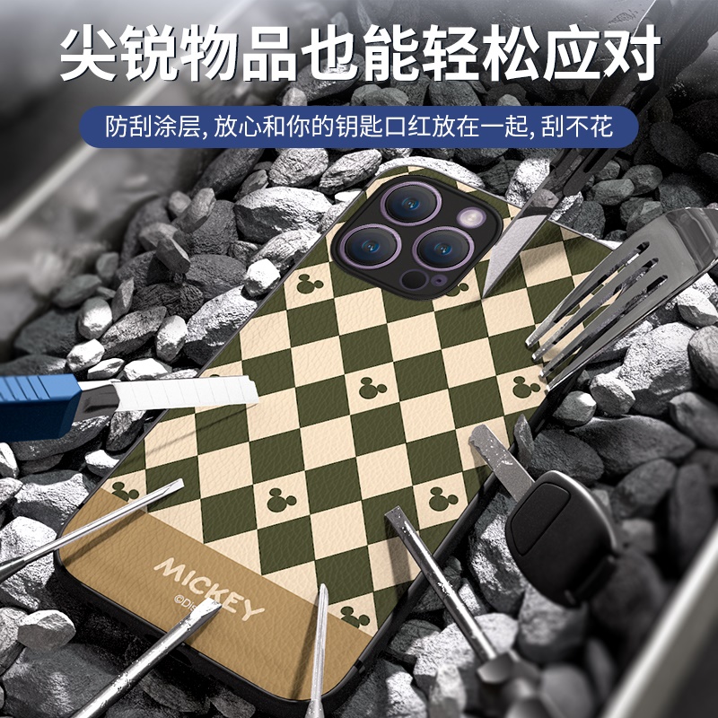 苹果14手机壳迪士尼iphone15promax新款菱格16pro高级感13卡通米奇xs复古小羊皮ip17全包镜头xr防摔11女适用