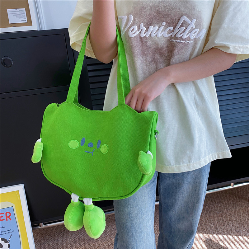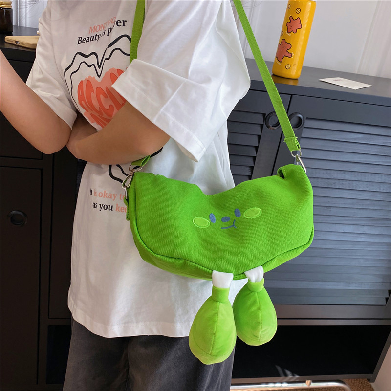MOBAG&KUENA秋冬稀奇古怪丑萌绿色豌豆荚洋气帆布小包单肩斜挎包