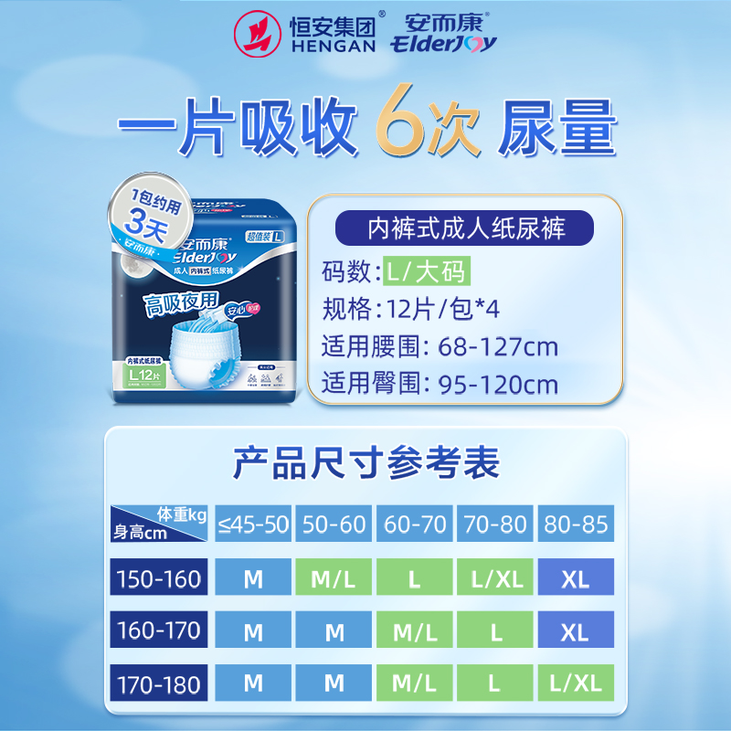 安而康超值装夜用成人拉拉裤百分百原生木浆老年人加厚透气尿裤