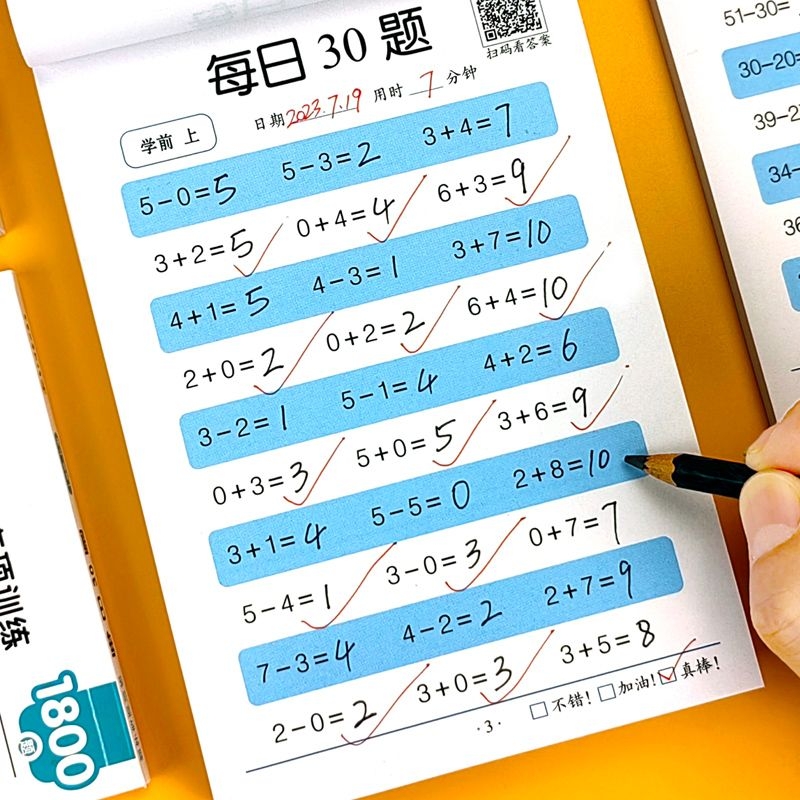 每日30题口算题卡幼儿园一年级天天练100以内加减法数学算术本小学生幼小衔接二三年级上下册计算专项训练