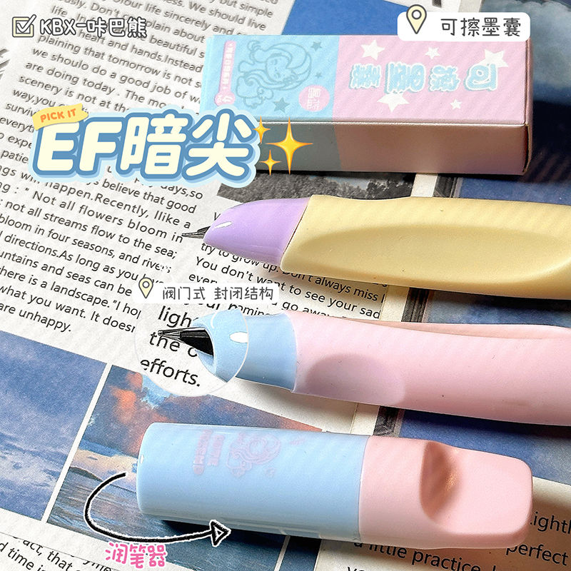咔巴熊可爱日记按动钢笔高颜值学生ins替换墨囊0.5EF尖练字钢笔
