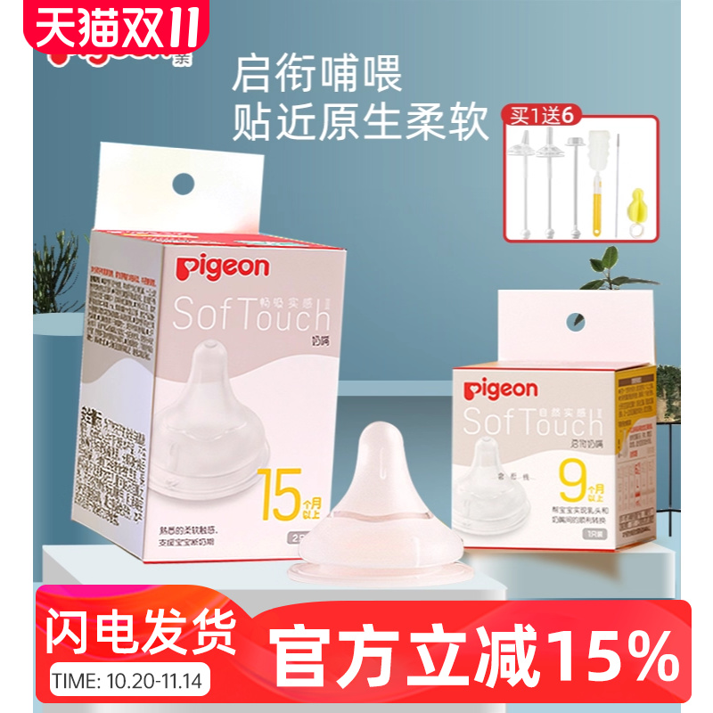 Pigeon贝亲奶嘴婴儿宽口径奶嘴畅吸实感3代启衔硅胶宝宝奶嘴