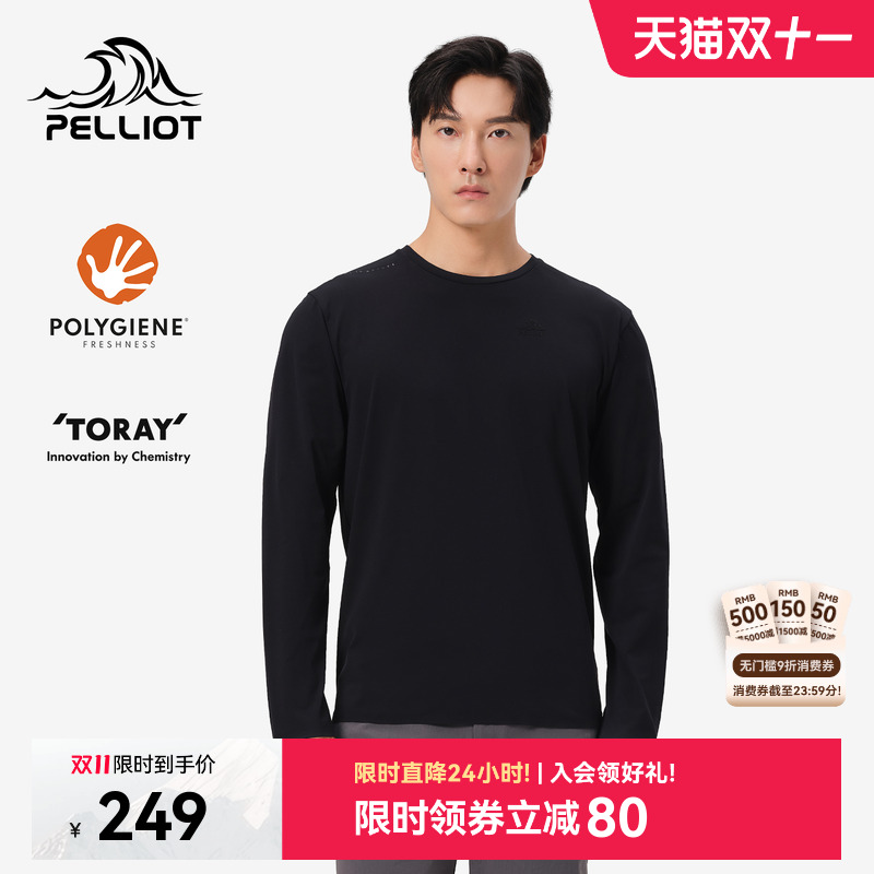 伯希和户外骑行速干T恤男款不闷汗运动长袖高弹抗皱抑菌健身上衣
