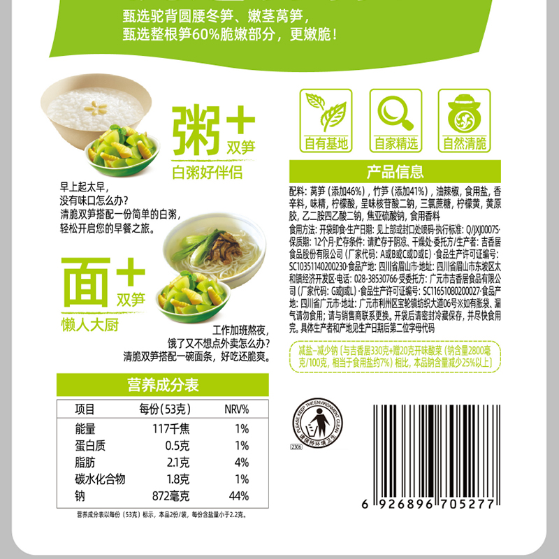吉香居清脆双笋106g爽口微辣下饭菜竹笋莴笋泡菜脆口菜芯清淡榨菜