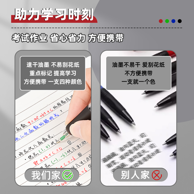 晨光多色圆珠笔按压式按动四色合一原子笔0.7彩色多功能4色油性笔标记笔签字笔黑中性笔学生用做笔记学生用品