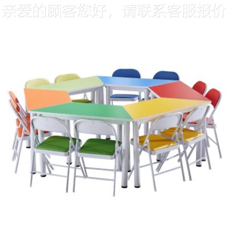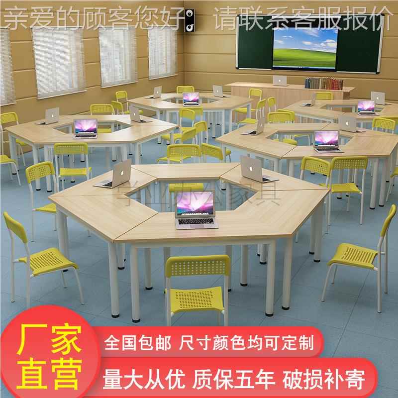 学生团体培训拼接743六角桌椅色边形创客训辅导阅览六室桌彩梯实
