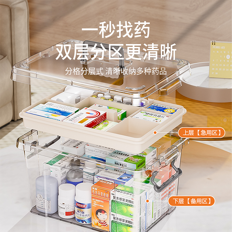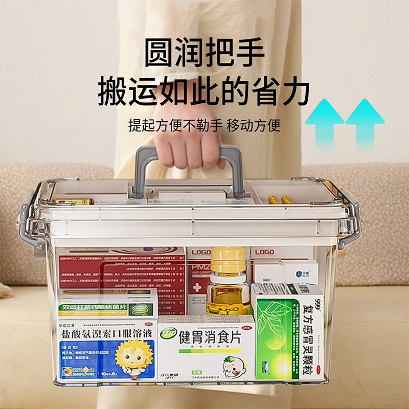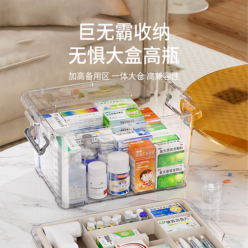 药箱收纳盒家用透明大容量医药箱宿舍专用便携式小药箱带盖长方形