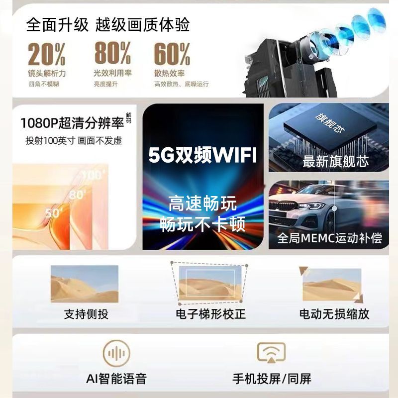 2025新款投影仪家用超高清卧室宿舍客厅5G家庭影院可连手机投屏客厅租房学生宿舍白墙直投无需幕布智能投影机