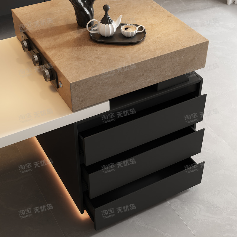 无忧岛意式极简岛台餐桌一体倒台家用可伸缩岩板高级感厨房中导台