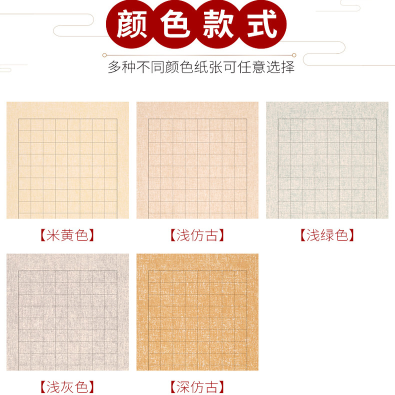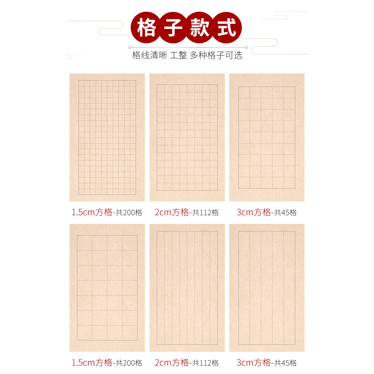 义记宣【麻纹日课纸50张】蜡染半生偏熟1.5~4cm格子书法专用初学者毛笔字练字方格宣纸硬笔小楷练习纸