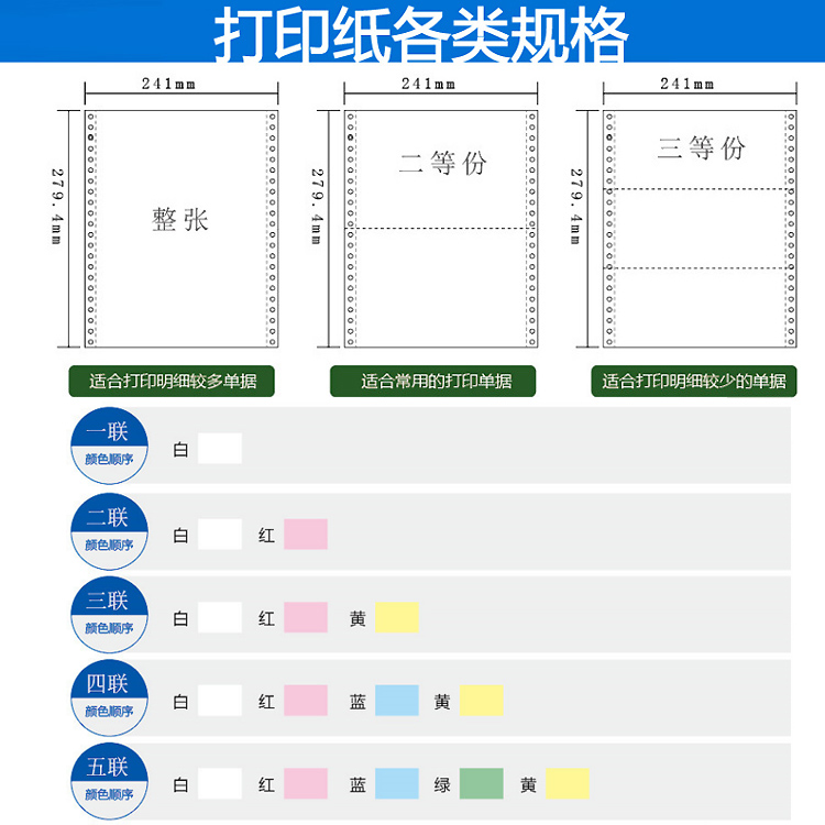 241东森电脑打印纸 二联二等分 三联二等分 三等分 四联连打纸