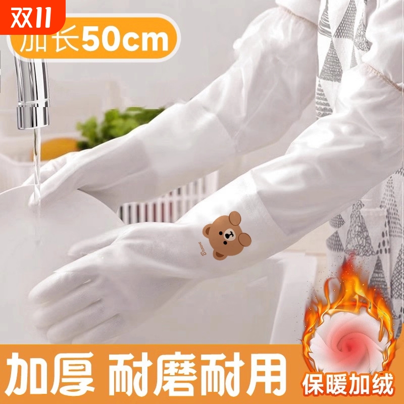 加绒洗碗手套家务厨房耐用型女清洁防水加厚加长洗菜衣服专用冬天